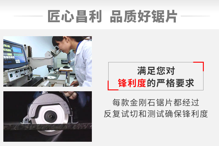 從2010年開始和昌利公司合作5年以來,一直以來對昌利干切王系列鋸片青睞有加,錢老板手下的工人師傅更是對產(chǎn)品有著十足的信任,用于干切各類石材、混凝土等建筑材料、用于外墻鋼掛工程,石材切割等。鋸片鋒利度很好,干切不燒刀、耐磨、性價比高。
